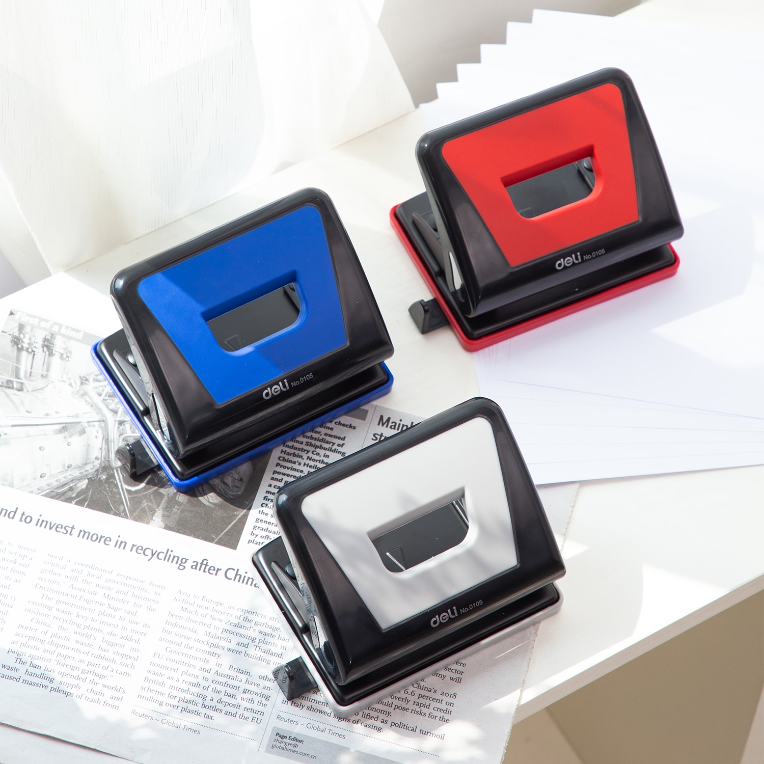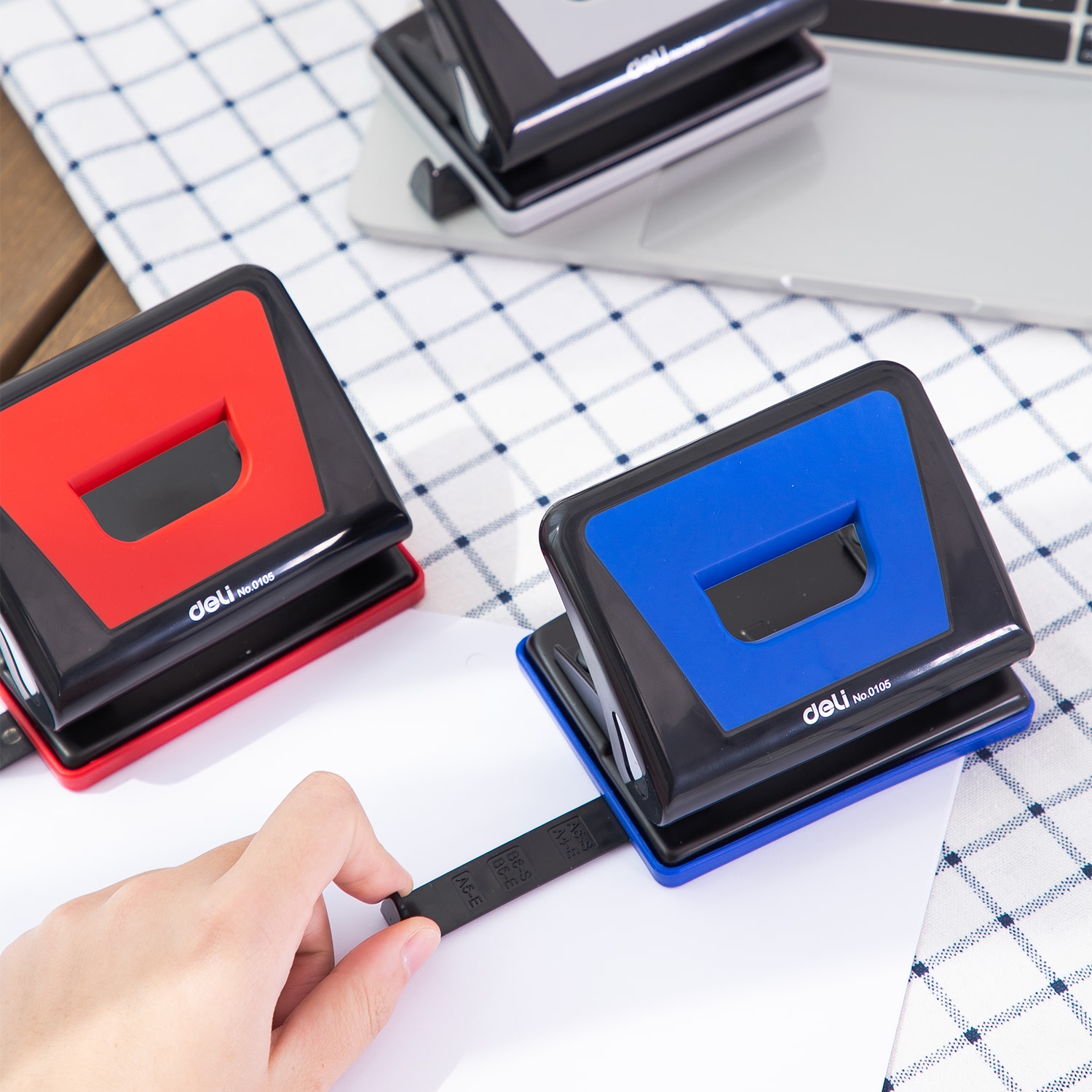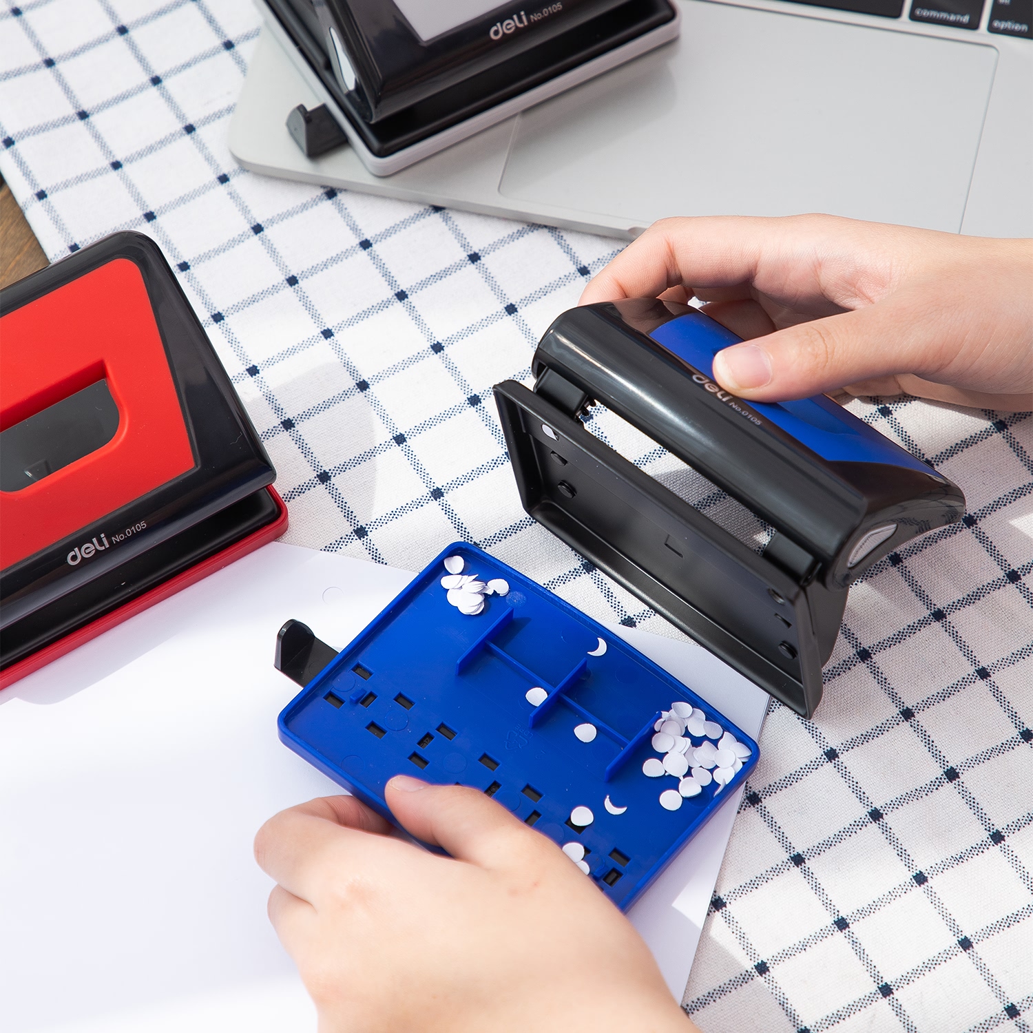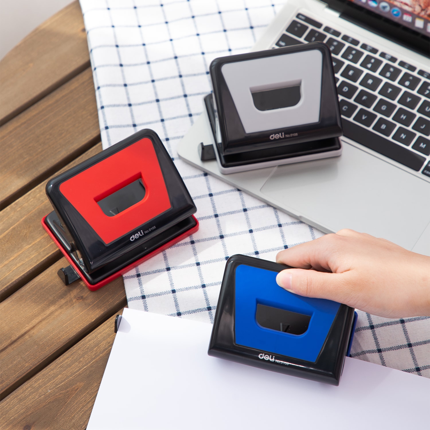 ✨Máy Đục Lỗ 15 Tờ Deli, Xanh Dương, Đỏ, Ghi Xám - 1 Cái E0105