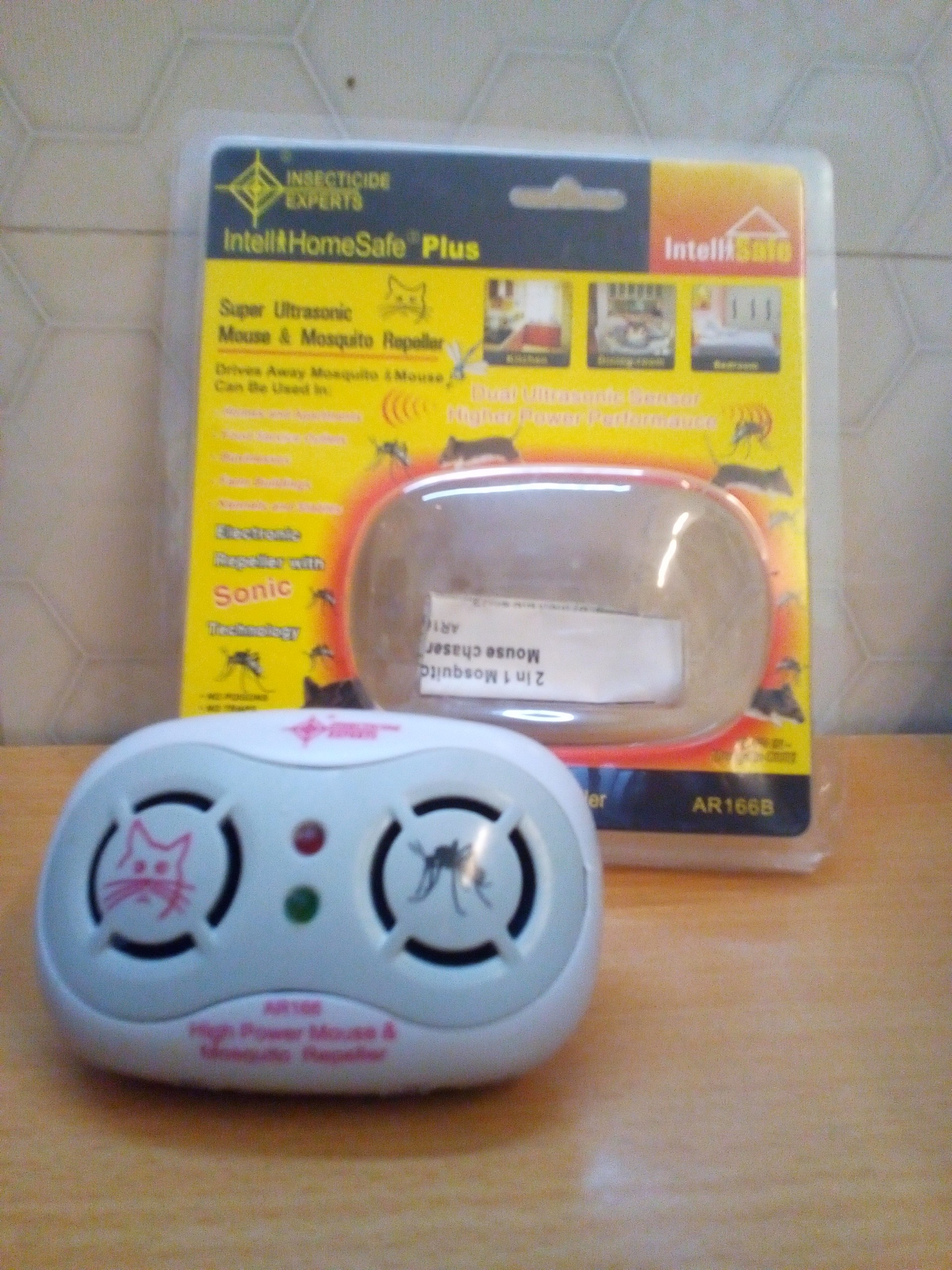 Thông tin sản phẩm: Kích thước: 20x19x7 ( cả bao bì) KT: 10x6x8 (SẢN PHẨM) Trọng lượng quy đổi : 400 Trọng lượng sp: 200g Máy đuổi côn trùng, chuột bằng sóng siêu âm IntellSafe là sản phẩm hữu ích bạn nên trang bị cho ngôi nhà của mình để bảo vệ sức khỏe của bạn và những người thân yêu.  Máy đuổi côn trùng, chuột bằng sóng siêu âm IntellSafe với thiết kế nhỏ gọn, rất dễ sử dụng sẽ đem lại cho bạn một không gian thoáng đãng, an toàn và sạch bóng côn trùng. ĐẶC ĐIỂM NỔI BẬT:Đây là loại máy đuổi chuột, đuổi gián, các loài côn trùng bằng IC vi xử lý phát ra sóng siêu âm có dải tần số từ 30 - 60 KHz. Máy đuổi côn trùng, chuột bằng sóng siêu âm IntellSafe có thể sử dụng thiết bị xung quanh trẻ em, vật nuôi,… mà không gây ảnh hưởng và cho phạm vi sử dụng hiệu quả nhất lên đến 50-80 mét vuông DỄ DÀNG SỬ DỤNG:Máy đuổi côn trùng, chuột bằng sóng siêu âm IntellSafe rất dễ sử dụng, bạn chỉ cần cắm thiết bị vào ổ điện là thiết bị có thể hoạt động liên tục cho đến khi bạn rút ra khỏi ổ cắm hoặc nếu thích bạn có thể để thiết bị cắm luôn trên ổ điện mà không cần phải gỡ ra để bảo trì, bảo dưỡng như các thiết bị khác.