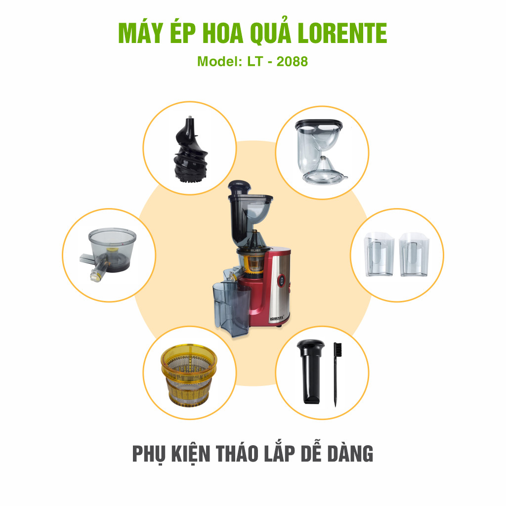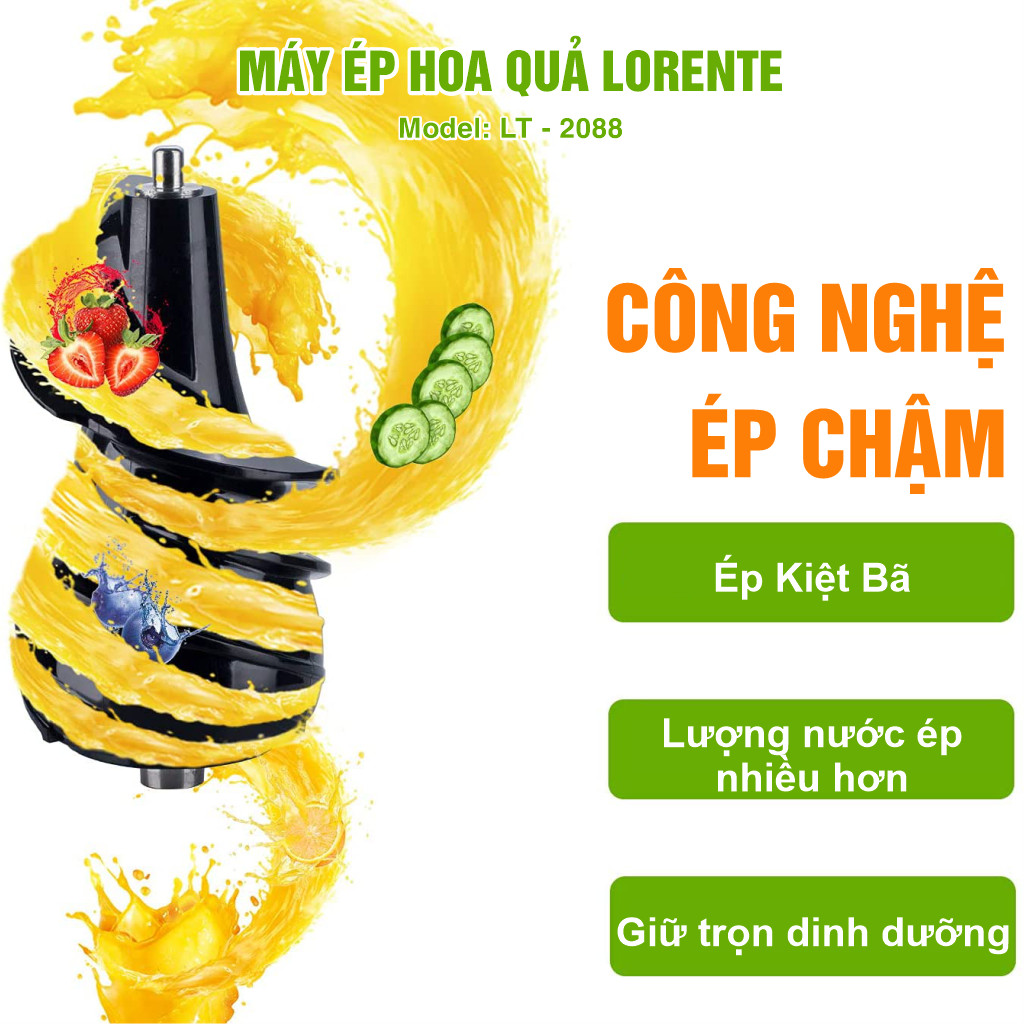 Giới thiệu máy ép trái cây chậm Lorente LT-2088 công suất 300W - Ép nguyên trái