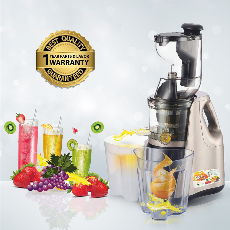 Công suất 150W tiết kiệm điện, tạo tốc độ ép trục thằng đứng tốc độ khoảng 40 – 80 vòng/phút, máy cho ra những ly nước thơm ngon, sánh mịn nguyên vẹn 90% vitamin và dưỡng chất