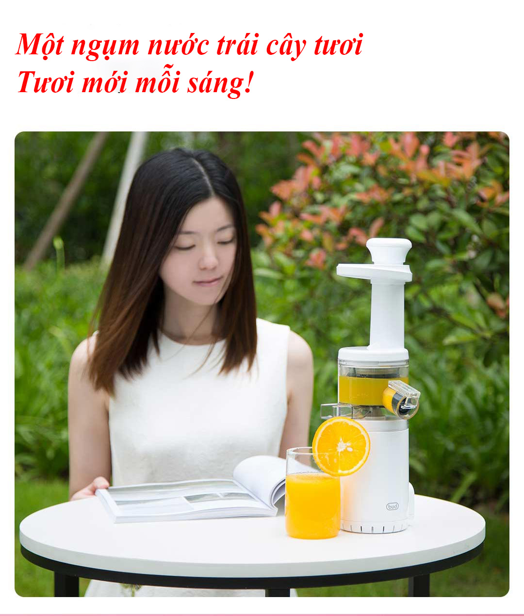 Máy Ép Chậm Trái Cây BUD Mini BJ08 - Tách Nước và Bã Ra 2 Phần Khác Nhau - Không Bị Cặn Gì Cả