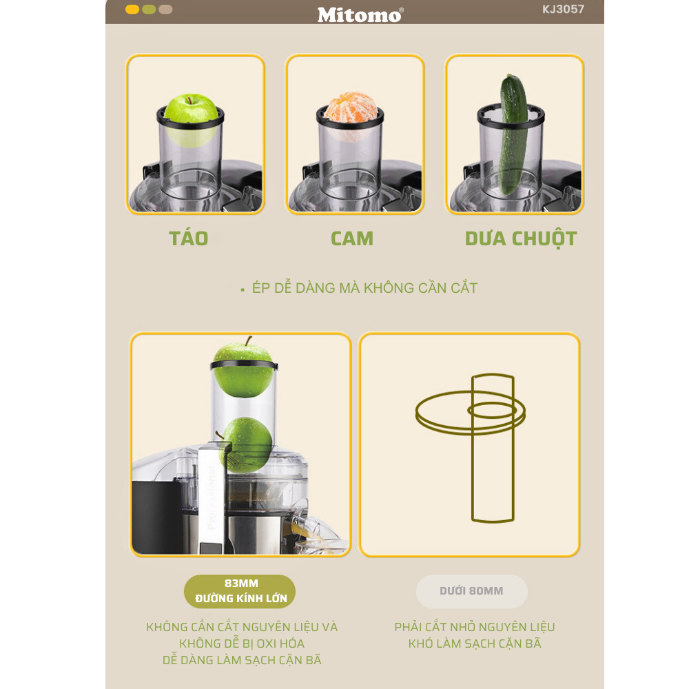 Máy ép trái cây nhanh công suất cao Mitomo KJ-3057 Bảo hành chính hãng 3 năm
