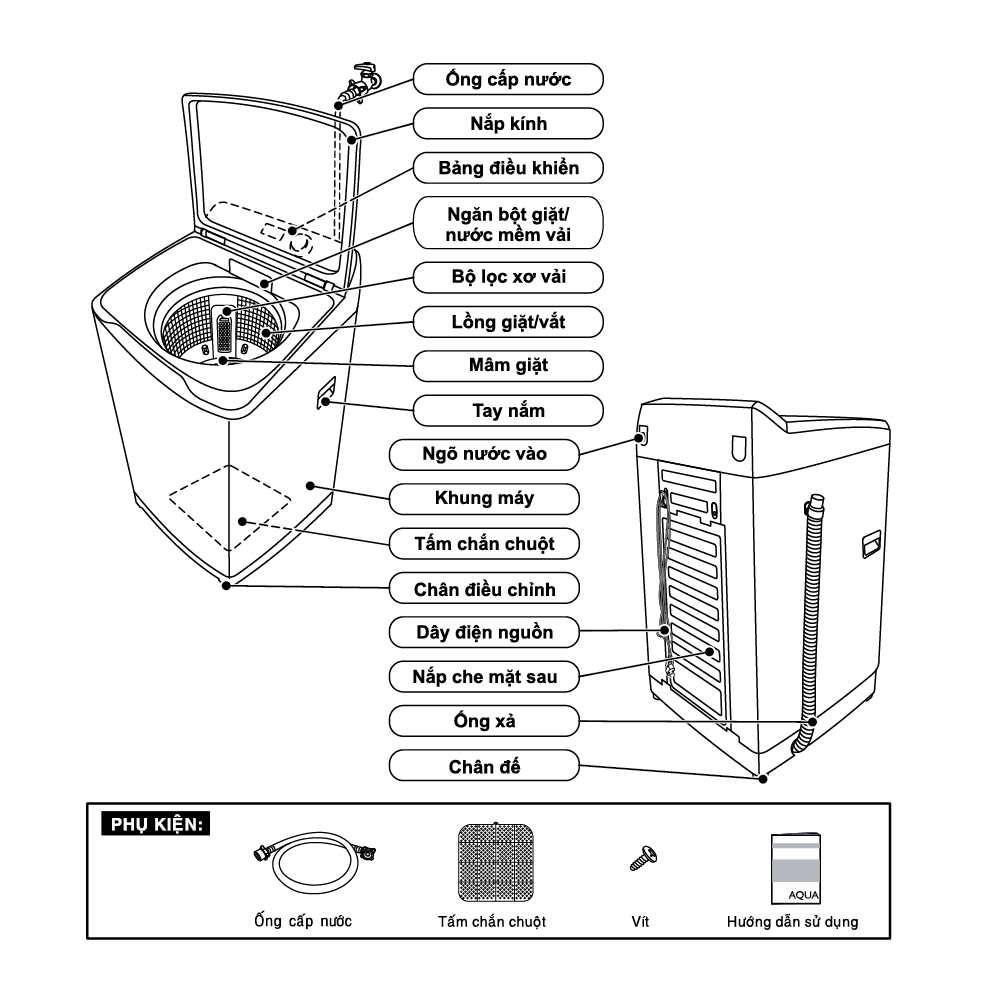 - Đối với sản phẩm máy giặt, AQUA có hỗ trợ lắp đặt trên toàn quốc (có thu phí). Quý khách có nhu cầu lắp đặt, xin vui lòng liên hệ gian hàng để được hỗ trợ