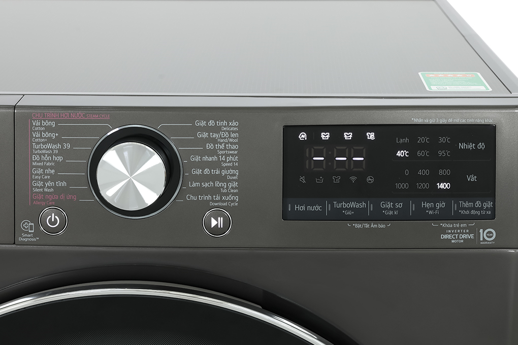 - Mẫu máy giặt này được thiết lập 14 chương trình giặt: vải bông, TurboWash 39, vải bông +, giặt hơi nước đồ trẻ em, giặt ngừa dị ứng, chu trình tải về, giặt nhanh 14 phút, giặt nhẹ, giặt ga giường, đồ hỗn hợp, giặt tay + đồ len, đồ thể thao, đồ tinh xảo và vệ sinh lồng giặt. Tùy theo từng loại quần áo, đồ dùng, chất liệu mà bạn lựa chọn chương trình giặt thích hợp nhất. Công nghệ giặt đặc biệt