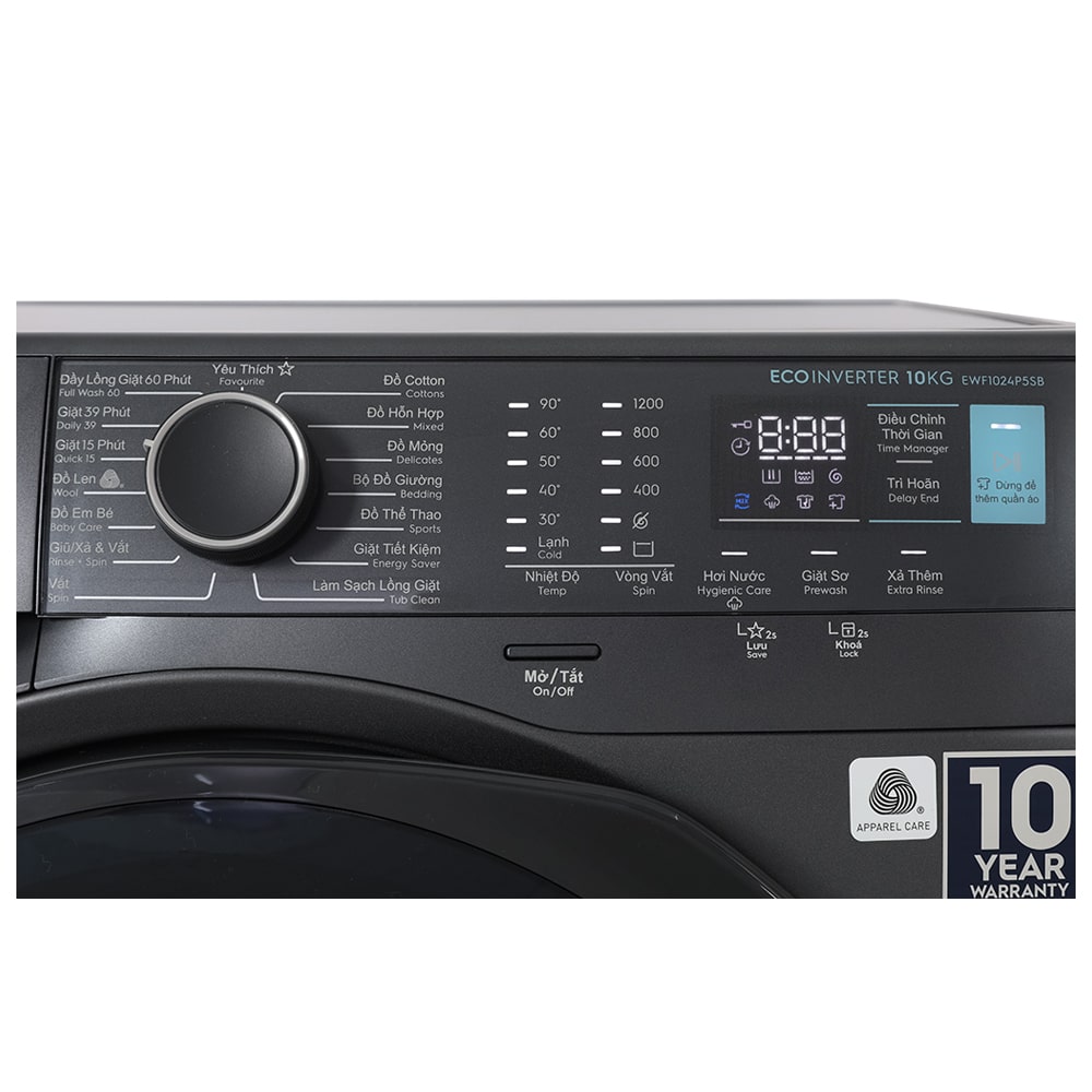 Nhìn chung, máy giặt lồng ngang Electrolux Inverter 10 kg EWF1024P5SB với thiết kế hiện đại, màu sắc tinh tế, cùng các công nghệ như giặt hơi nước Hygienic Care, hòa tan hiệu quả chất giặt tẩy nâng cao hiệu quả giặt giũ, bảo vệ an toàn làn da nhạy cảm. Khối lượng giặt 10 kg phù hợp cho các gia đình từ 5 - 7 thành viên, trang bị công nghệ EcoInverter giúp vận hành êm ái, bền bỉ, tiết kiệm chi phí điện nước sẽ là sự lựa chọn đáng cân nhắc cho gia đình bạn.