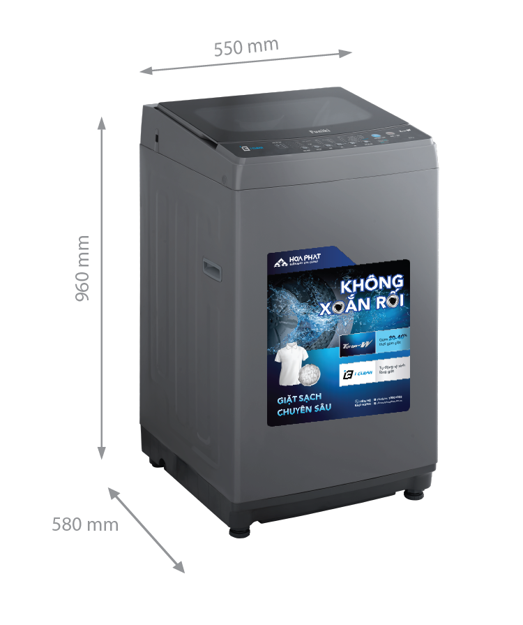 - ĐƯỢC KHUI THÙNG KIỂM TRA sản phẩm trước khi thanh toán/ký nhận Thông số kỹ thuật Công suất tiêu thụ điện 450 W Trọng lượng máy 40 kg Kích thước máy (RxSxC) mm 550 x 580 x 960 mm Khối lượng giặt 10.5 kg Tốc độ vắt (vòng) (RPM +/- 20) 680 Áp lực nước tiêu chuẩn (Mpa) 0.03 – 0.8 Mpa Tính năng Chương trình giặt 7+1 chương trình giặt Tiện ích TurboW Giặt 1 chạm One Touch Hẹn giờ giặt Khóa trẻ em Tự động vệ sinh lồng giặt i-clean Suy luận ảo Fuzzy Logic Xuất xứ Thái Lan