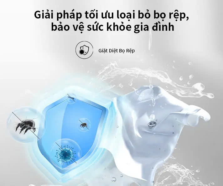 - Giải pháp tối ưu loại bỏ bọ rệp, bảo vệ sức khỏe gia đình: Dòng nước ma sát nhẹ nhàng tách rời và cuốn trôi bọ rệp khỏi sợi vải. Sau đó, những xoáy nước mạnh mẽ diệt trừ hoàn toàn bọ rệp. Nhiều chu trình xả và chà loại bỏ mọi dấu vết của bọ rệp, đảm bảo quần áo sạch sẽ tuyệt đối.