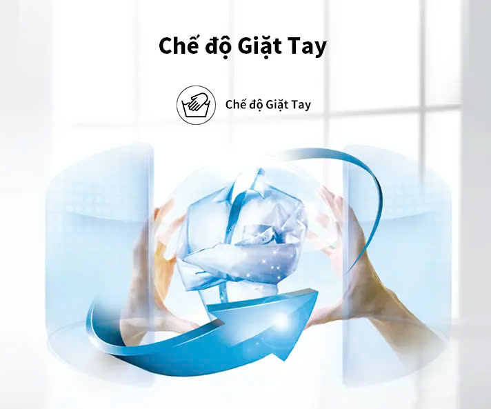 - Chế độ Giặt Tay: Để mô phỏng hoạt động giặt tay của con người, công nghệ Giặt Tay của máy giặt Hisense có thể tự động điều chỉnh cánh quạt quay theo chiều thuận và lồng giặt đảo chiều ngược lại, đạt được hiệu quả giặt sạch kỹ lưỡng mà không gây hại cho sợi vải.