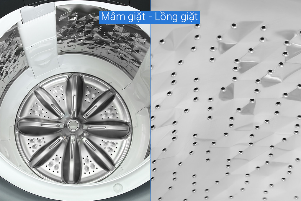 Lồng giặt có kích thước lớn, người dùng có thể dễ dàng cho chăn màn vào giặt. Với thiết kế đặc biệt, giúp bạn dễ dàng chạm vào đáy lồng để lấy các món đồ nhỏ hay phụ kiện mà không cần nhón gót.