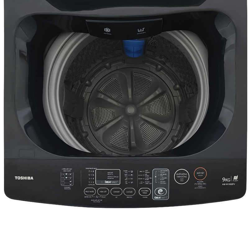 - Máy giặt Toshiba 9 kg AW-M1000FV(MK) thuộc kiểu máy giặt lồng đứng với chất liệu vỏ máy làm bằng kim loại sơn tĩnh điện có độ bền tốt, giảm trầy xước và được thiết kế màu đen nên dễ dàng phối hợp với các nội thất khác trong khu vực đặt máy của gia đình.