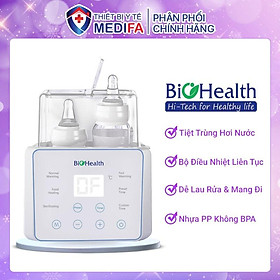 Mua tại TiktokMáy hâm sữa là một thiết bị để làm hâm nóng sữa cho trẻ. Ngoài ra còn có thể hâm nước pha sữa, hâm đồ ăn cũng như tiệt trùng đồ ăn. Loại máy này giúp làm nóng và giữ nhiệt tự nhiên cho bình sữa bằng cách nhận truyền nhiệt từ hơi nước hoặc từ lớp thép của thân máy lan tỏa. Hôm nay, Medifa giới thiệu đến các bạn sản phẩm Máy hâm sữa tiệt trùng Biohealth BH9100, hi vọng với sản phẩm này việc chăm sóc các bé trở nên đơn giản và thuận tiện hơn. ĐẶC ĐIỂM NỔI BẬT: