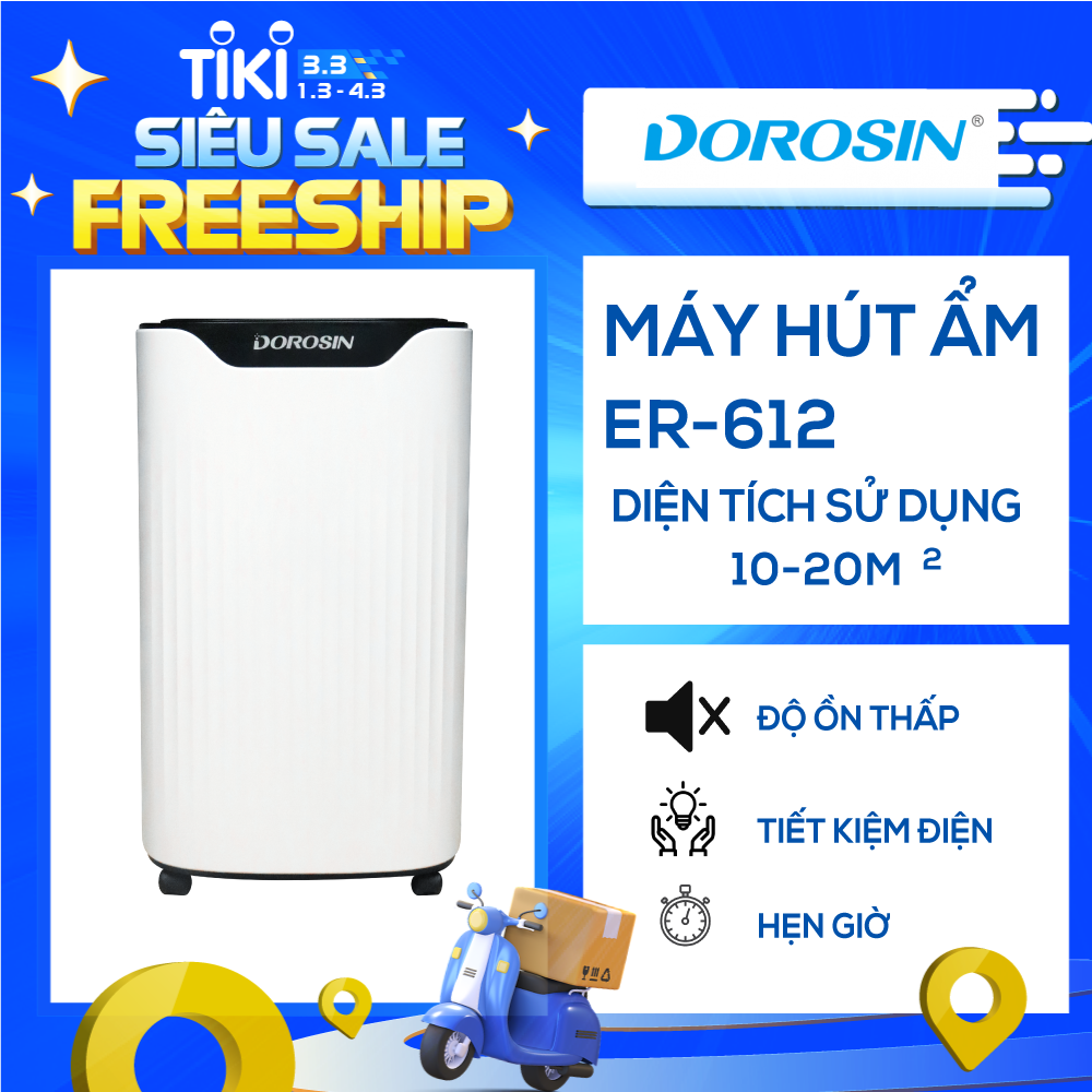 - Đặc điểm nổi bật của máy hút ẩm Dorosin ER-614 Tiết kiệm điện năng Máy hút ẩm Dorosin ER-612 sử dụng máy nén giúp tiết kiệm điện năng và bảo vệ môi trường, với chất làm lạnh R134A. Bộ lọc kháng khuẩn Ngoài chức năng hút ẩm, máy ER-612 có thêm chức năng lọc không khí Ngoài lớp lọc thô, máy còn có kèm theo màng lọc cacbon hoạt tính cao cấp, hấp thụ hầu hết mọi loại mùi và bụi bẩn. Công suất hút ẩm vừa và nhỏ Với công suất hút ẩm 12 lít /24 giờ (ở điều kiện 30oC, 80%), máy ER-612 thích hợp để sử dụng hút ẩm ở những diện tích như văn phòng làm việc, chung cư mini… Các phím điều chỉnh linh hoạt Trên máy hút ẩm ER-612 có các phím điều chỉnh chức năng thuận tiện cho người dùng. Người dùng có thể tùy ý điều chỉnh độ ẩm theo nhu cầu sử dụng. Độ ẩm thích hợp trong không khí khiến chúng ta cảm thấy thoải mái là từ 40 – 70%, thích hợp cho bé và trẻ sơ sinh là 40 – 60%. Tính năng hẹn giờ tự động Máy có trang bị chức năng hẹn giờ giúp bạn đặt giờ làm việc của máy hút ẩm Dorosin ER-612 khi đi ra ngoài hoặc khi sử dụng máy qua đêm. Sản phẩm có đèn báo hiệu dừng làm việc khi bình nước thải đầy, khi đó bạn nhớ mở bình ra và đổ nước thải đi nhé. Độ ồn thấp Độ ồn làm việc của máy hút ẩm Dorosin ER-612 thấp là 41dB giúp bạn tập trung làm việc, nhất là gia đình của trẻ nhỏ thì sản phẩm hoạt động đảm bảo không gây tiếng ồn cho bé khi ngủ. Tính năng phá tuyết Máy hút ẩm Dorosin ER-612 còn có tính năng phá tuyết. Ở dàn lạnh, khi độ ẩm cao quá, đôi khi hơi nước bị đóng tuyết nên trên máy có thiết kế và lắp đặt chức năng tự động phá tuyết. Chức năng hút ẩm đồng thời lọc không khí Ngoài chức năng hút ẩm, máy ER-612 có thêm chức năng lọc không khí và kết nối wifi. Ngoài lớp lọc thô, máy còn có kèm theo màng lọc cacbon hoạt tính khử mùi, khử khuẩn. Các bạn yên tâm vì lớp màng lọc của sản phẩm là màng lọc cao cấp, chất lượng cao nên khả năng hấp thụ hầu hết mọi loại mùi và bụi bẩn.