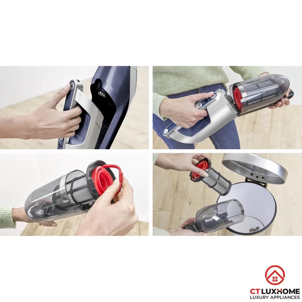 Máy hút bụi dùng pin Tefal TY6878WO hoạt động không dây sử dụng pin 18V với thời lượng hoạt động tới 45 phút, cùng đa dạng phụ kiện, dễ dàng tháo lắp sử dụng cầm