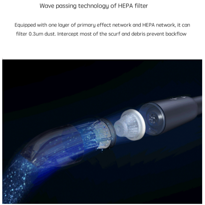 Làm sạch ngay cả bụi siêu mịn với chế độ rung 6.500 lần / 1 phút Bộ lọc Hepa cao cấp, thu thập bụi ( loại bỏ 99.97% bụi mịn, lọc cả bụi siêu mịn