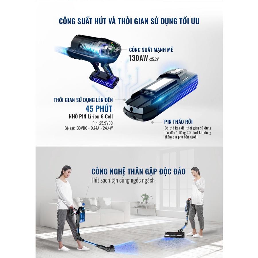 - Thân máy có thể gập lại, dễ dàng hút ở nơi hẹp nhất như gầm bàn, tủ, giường