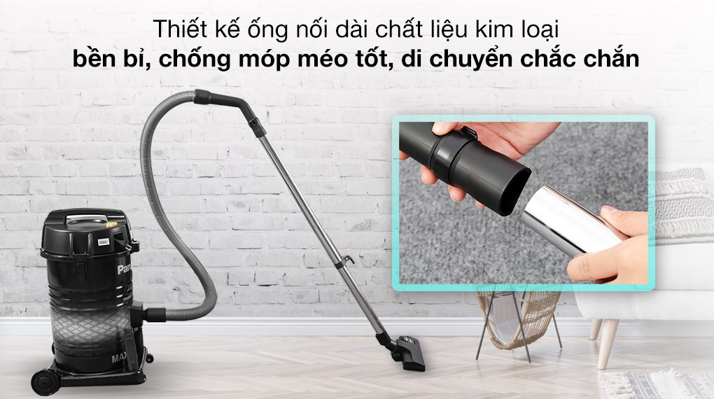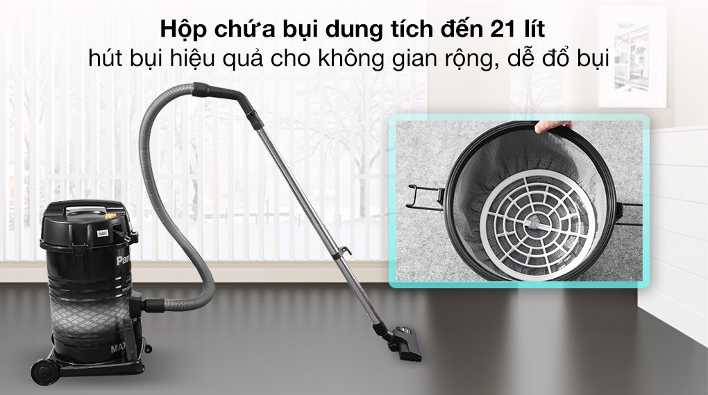 Máy hút bụi Panasonic với thiết kế công nghiệp, kiểu dáng chắc chắn, mạnh mẽ, có với bánh xe tiện di chuyển nhẹ nhàngCông suất hoạt động 2300 W cho lực hút mạnh mẽ, sử dụng hiệu quả cho các khu vực d...