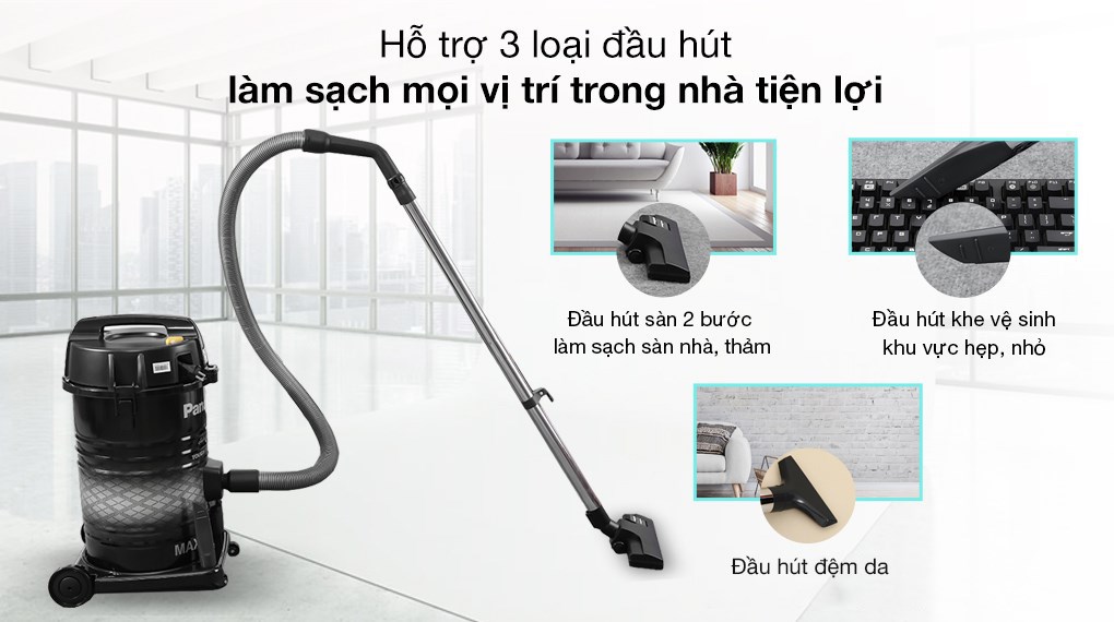 MÁY HÚT BỤI Panasonic lực hút mạnh và trang bị đầu hút đệm giường, rèm cửa