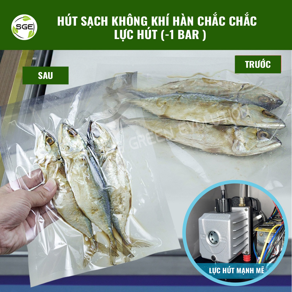 • Bơm chân không mạnh mẽ, hút chân không triệt để 100%, nguyên lý hoạt động là hút chân không hoàn toàn trong buồng.