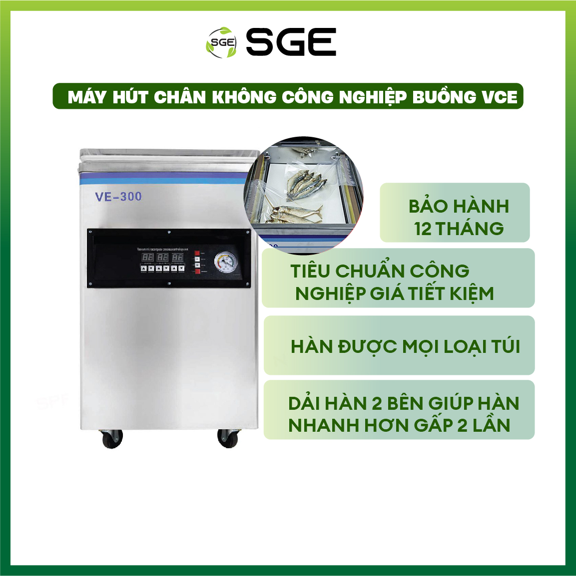 Máy hút chân không buồng VCE là loại máy hút chân không công nghiệp. Nguyên lý hoạt động của máy là làm cho tất cả các khu vực bên trong buồng trở thành chân không. Vì vậy có thể yên tâm rằng tất cả sản phẩm bên trong buồng sẽ được hút chân không 100%. Máy sử dụng được với nhiều loại sản phẩm đa dạng như dạng khô, dạng bột hay dạng nước sốt lỏng. Đây là loại máy để bàn hoặc đứng tuỳ theo model được thiết kế nhỏ gọn và tiết kiệm diện tích.