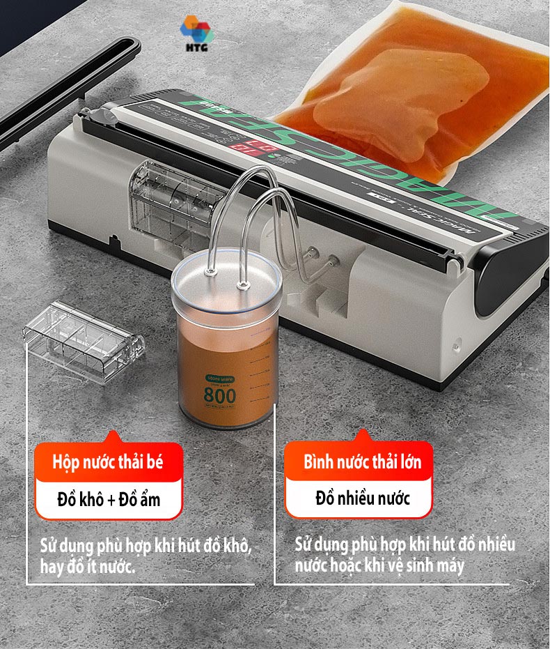 Đặc điểm nổi bật: - 5 nhiệt độ hàn miệng (niêm phong) miệng túi tương thích theo độ dày của túi sử dụng - Thiết kế chống thấm nước, ngắn chất lỏng xâm nhập vào