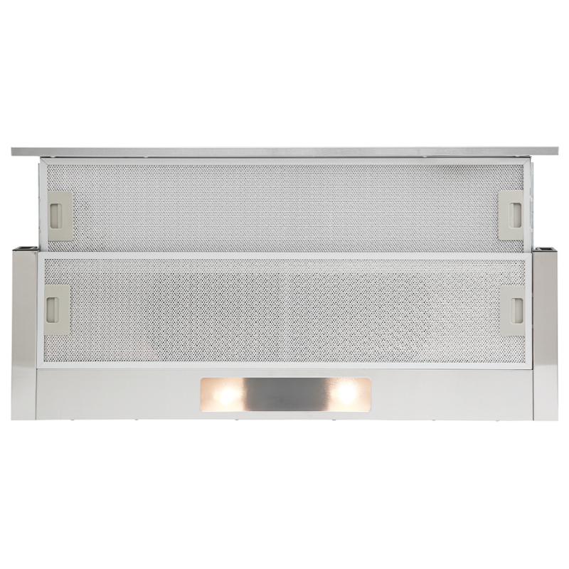 Máy hút mùi âm tủ • Chất liệu kính phối inox sang trọng • Kết cấu âm tủ tiện lợi • Động cơ 1x130W • Đèn Led 2x1.5W • Nguồn điện 220V - 240 V