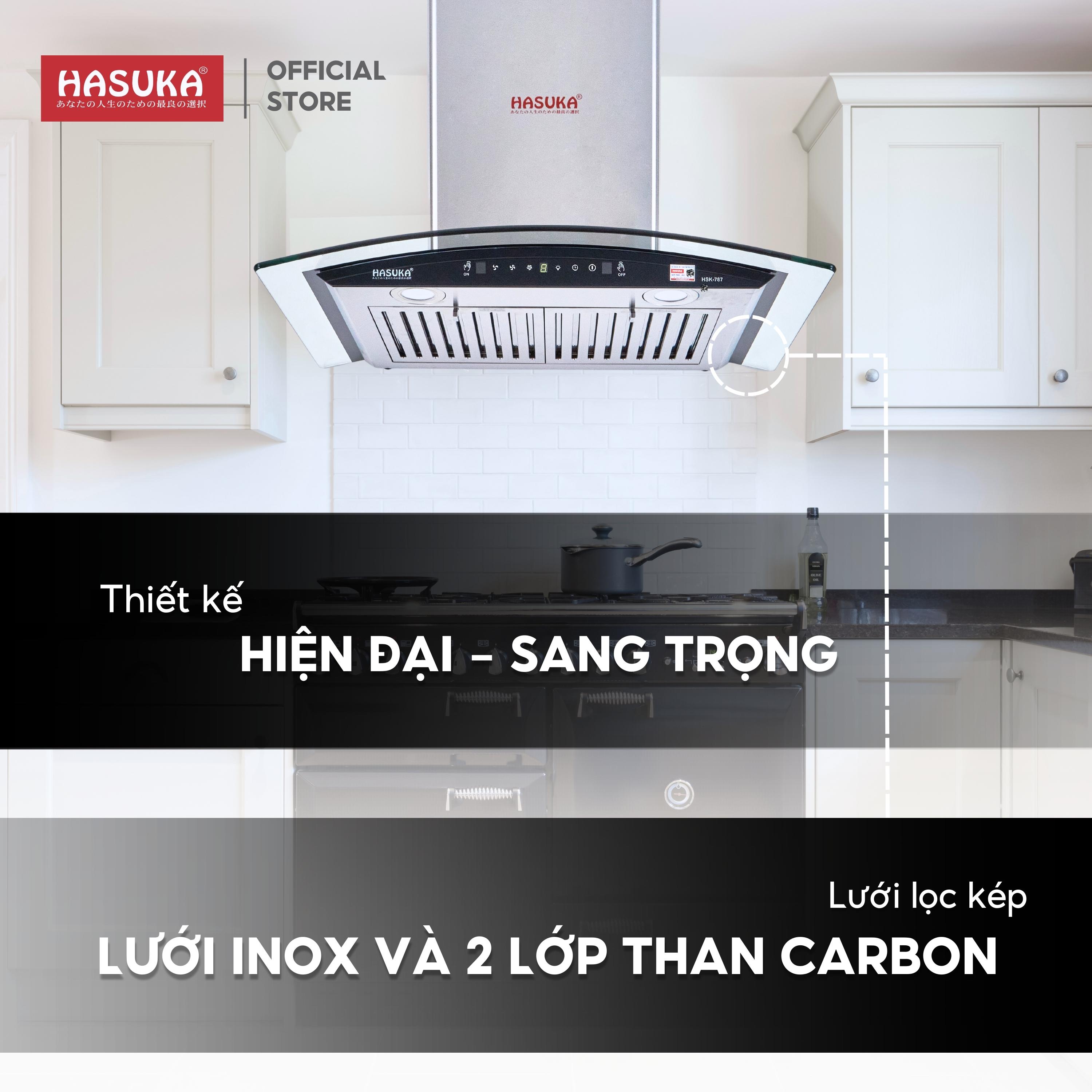 Kiểu máy treo độc lập Điều khiển: Cảm ứng 2 mặt 9 tốc độ siêu êm Khử mùi bằng than hoạt tính Lưới lọc inox dạng thanh 5 lớp Chất liệu: Inox - Kính Công