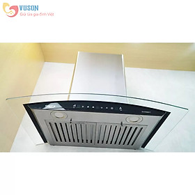 Thông số kỹ thuật: • Máy hút mùi kính cong • Thân máy bằng inox sáng đẹp • Kính cường lực dày 5mm tráng men bóng cao cấp • Điều khiển phím bấm 3 tốc