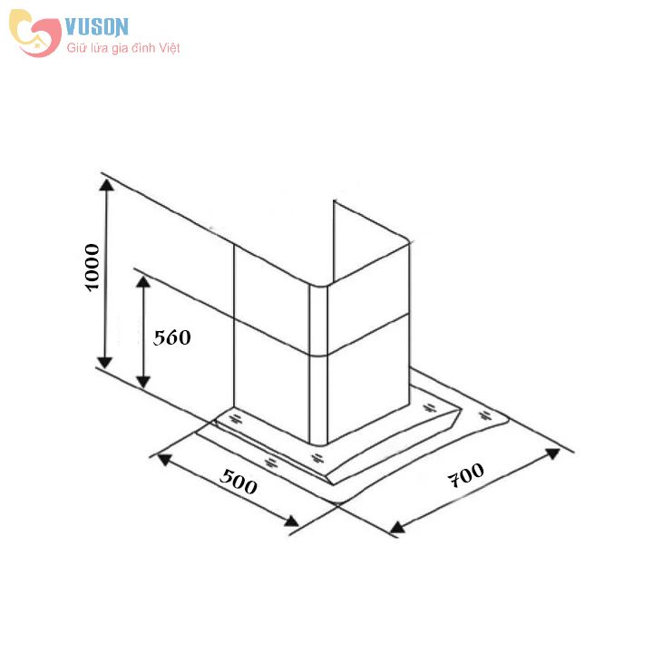 Kích thước 700x500x560 mm phù hợp với nhiều không gian bếp.