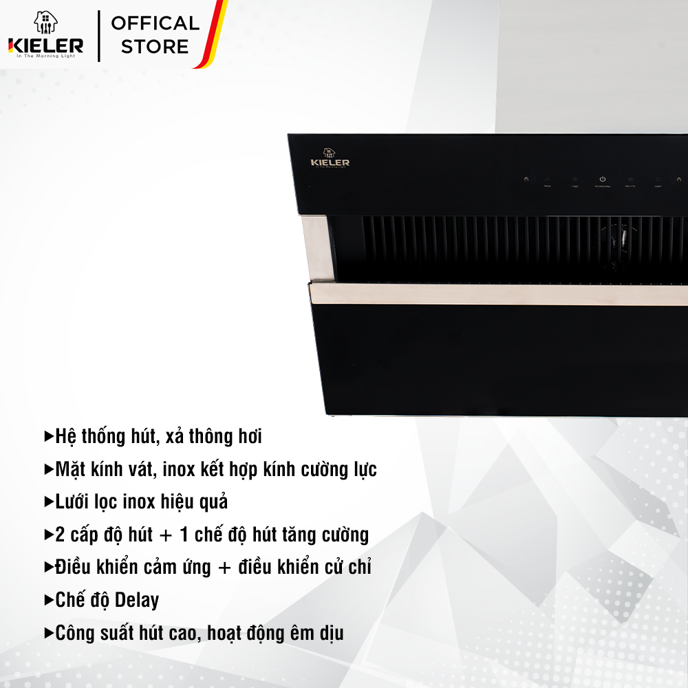 - Tên sản phẩm: Máy hút mùi KIELER KL-SUPER970 công suất hút cao, không gây tiếng ồn, kiểu vát kính sang trọng, điều khiển bằng cử chỉ