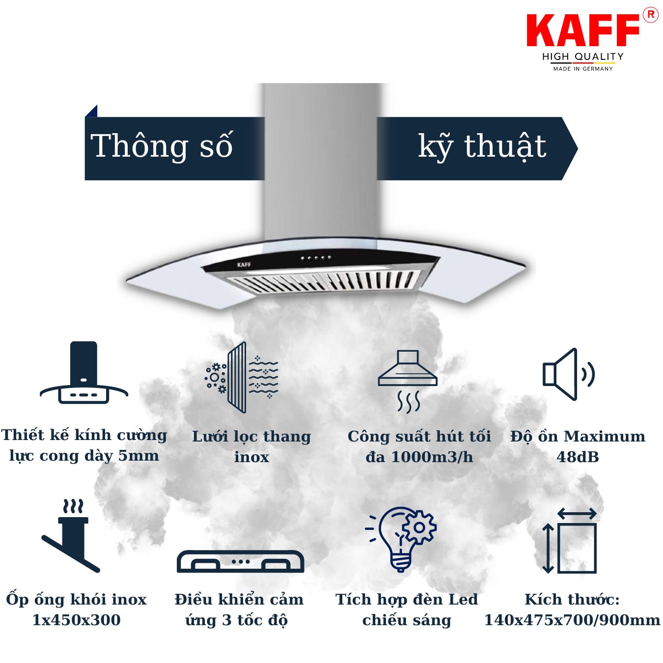 Máy hút mùi kính cong KAFF KF-GB905 KAFF Official sẽ mang đến cho gia đình bạn một gian bếp đẳng cấp với sản phẩm Máy hút mùi kính cong KAFF KF-GB905 sở hữu thiết kế sang