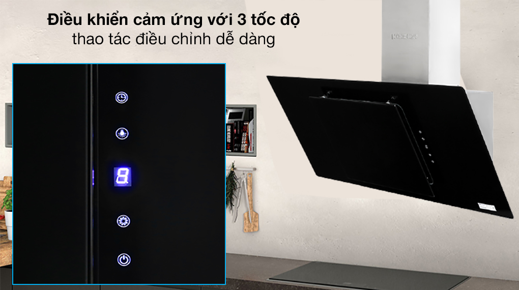 ĐẶC TÍNH SẢN PHẨM Hút mùi vát kính Chất liệu kính, inox cao cấp Mặt kính cường lực sang trọng Điều khiển cảm ứng 3 tốc độ Màn hình LCD tính