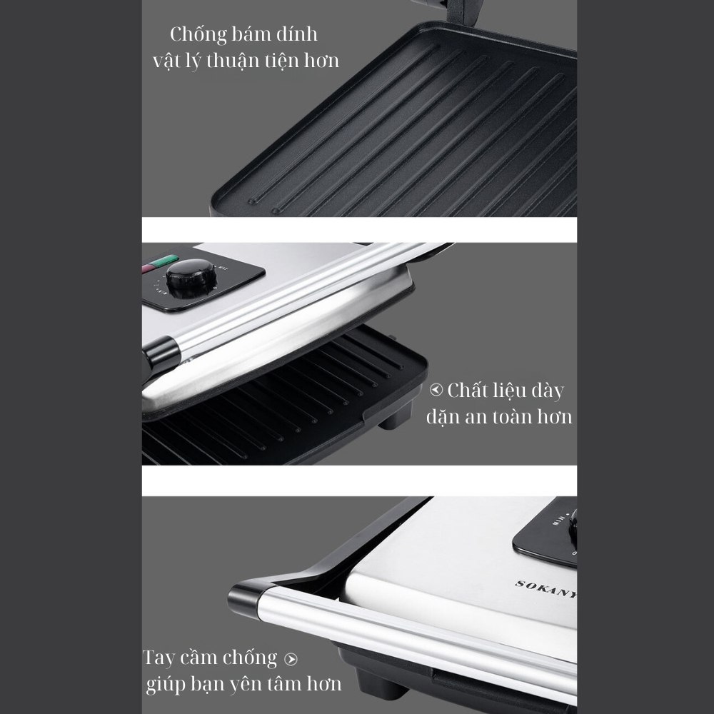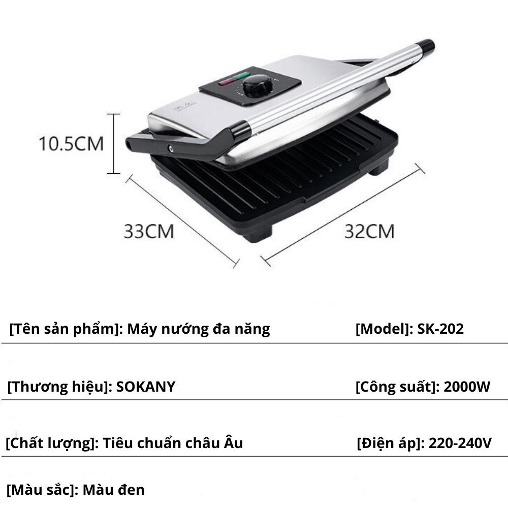 Máy kẹp nướng bánh mì ép bánh sandwich, rán trứng, nướng thịt CHỐNG DÍNH đa năng SOKANY SK-202 dễ dang vệ sinh [BẢO HÀNH CHÍNH HÃNG 12 THÁNG - ĐỔI TRẢ TRONG 15 NGÀY ĐẦU]