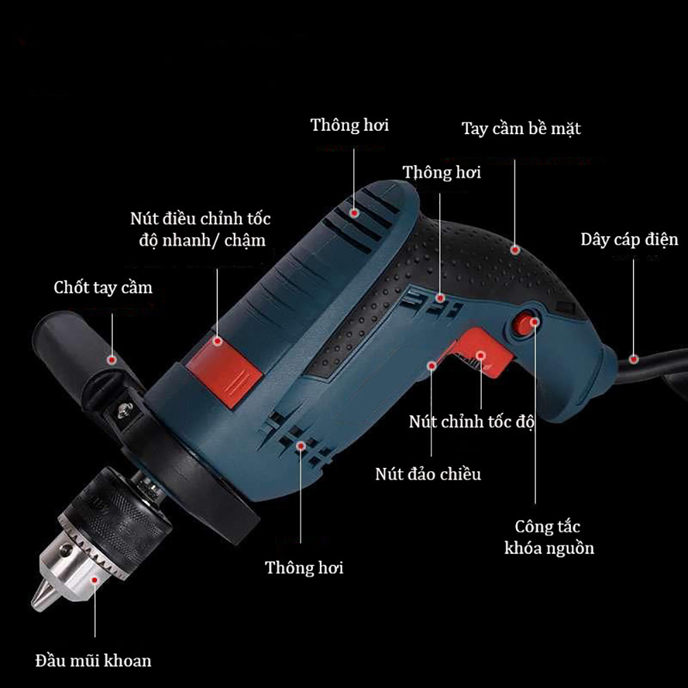 Máy khoan ABG 13RE 13mm Công Suất Mạnh Mẽ Lý Tưởng, Dùng Để Khoan Lỗ Trên Các Bề Mặt Chất Liệu Như: Tường, Gỗ, Thép, Bê Tông Có Tính Ứng Dụng Cao Với Thiết Kế Nhỏ Gọn, Dễ Sử Dụng- Hàng Chính Hãng.