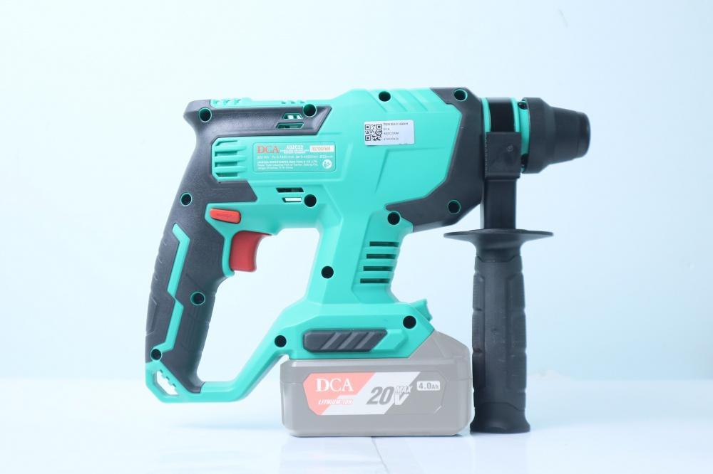 Thân máy khoan bê tông pin 20V DCA AZC22Z sử dụng động cơ không chổi than Brushless với công nghệ Pin Li-On cho tốc độ sạc nhanh và dùng lâu. Sản phẩm có 3 chức năng làm việc riêng biệt: Khoan thường, khoan búa và đục. Tay cầm chắc chắn với thước đo bằng kim loại. Nút vặn điều chỉnh chế độ gần sát tay cầm mang lại tiện lợi khi sử dụng. Máy có công suất hoạt động mạnh mẽ với tốc độ xoay đạt 1400 vòng/phút và tốc độ đạp đạt 4500 lần /phút. Cho khả năng khoan gỗ tối đa 28mm, thao tác nhanh chóng và chính xác tuyệt đối.