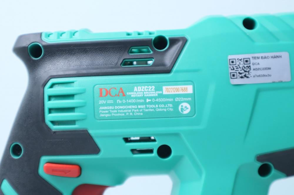 Thân máy khoan bê tông pin 20V DCA ADZC22Z là sản phẩm của thương hiệu DCA. Thân máy có thiết kế tinh tế với 2 màu chủ đạo đen xanh. Với màu đen là phần bọc cao su chống trượt, được dùng cho phần tay cầm. Và phần xanh là lớp vỏ nhựa cao cấp. Máy đáp ứng tốt mọi điều kiện làm việc kể cả trong môi trường khắc nghiệt.