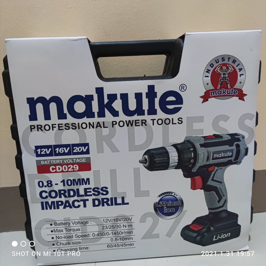 Ưu điểm nổi bật của máy khoan pin 20V Makute CD029 Makute CD029 đi kèm 2 pin sạc Li-ion 20V 1.5Ah, bộ sạc và hộp đựng chắc chắn.  Trọn bộ sản phẩm Máy khoan pin 20V Makute