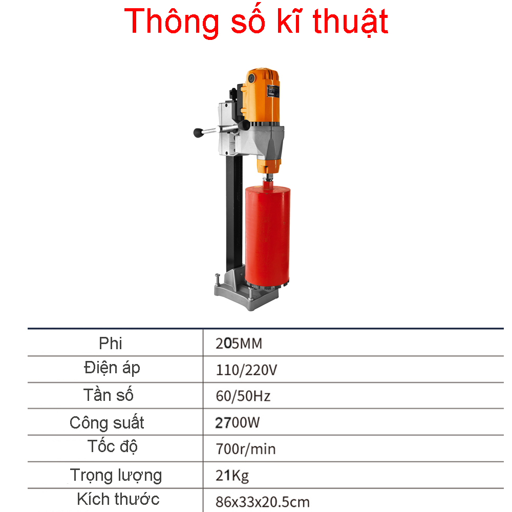 Thông số kỹ thuật của máy khoan rút lõi Dera phi 205 :