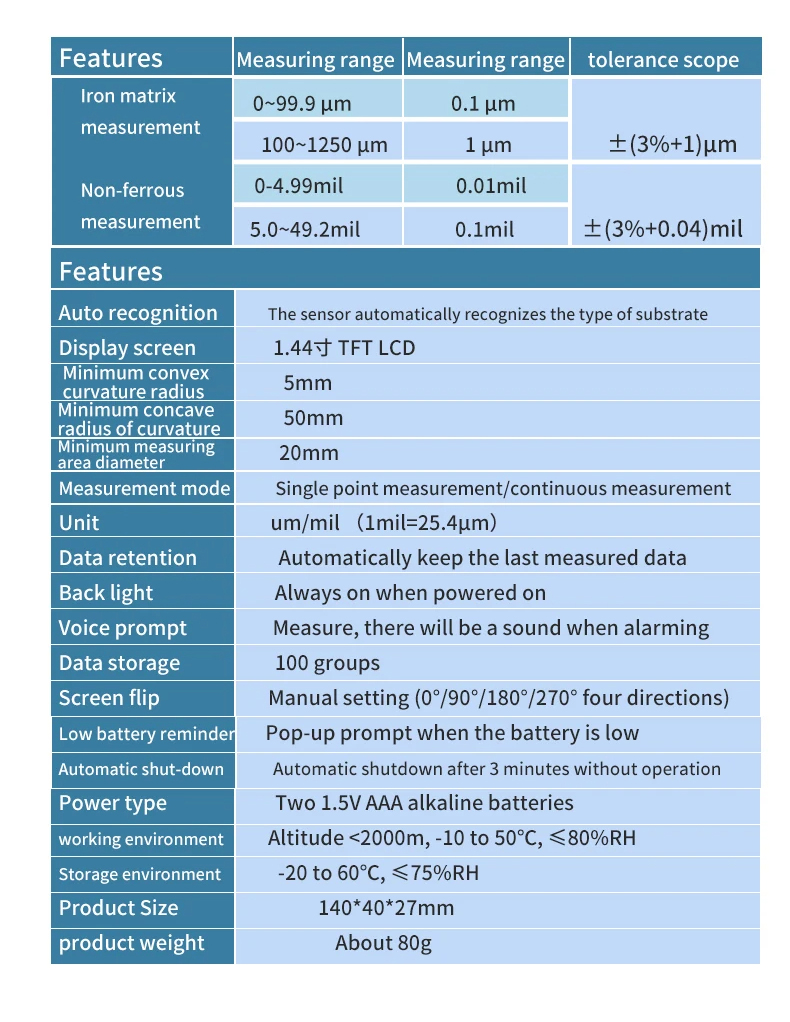 - Cách bảo quản rất đơn giản: Máy đo độ dày màng sơn này rất dễ làm sạch, chỉ cần lau bằng vải ẩm và lau khô.