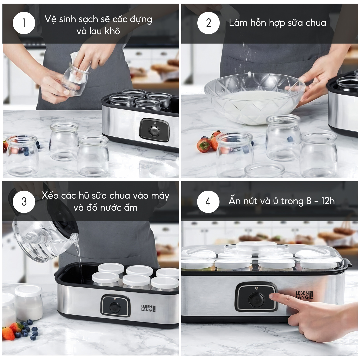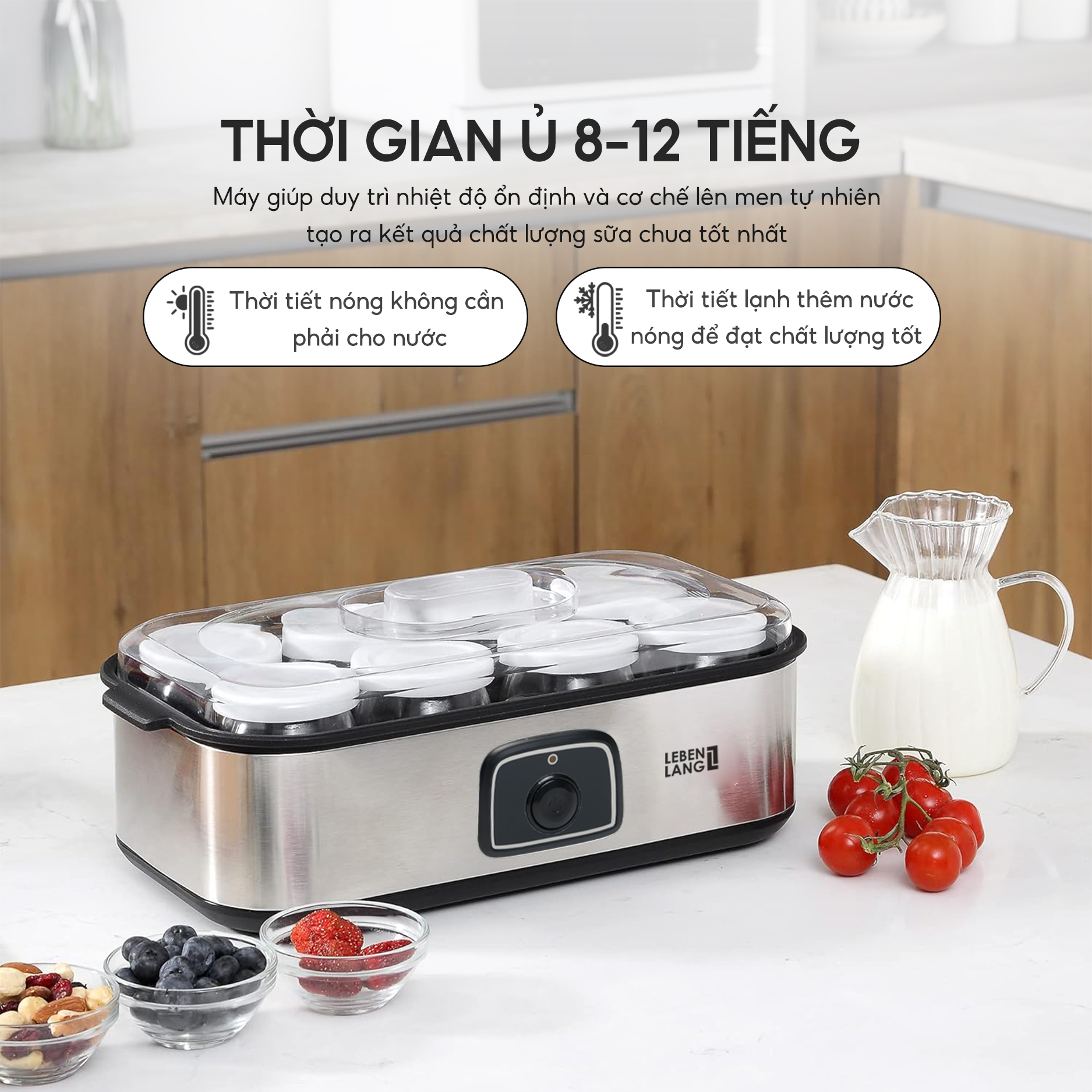Máy làm sữa chua Lebenlang LBL9139, máy ủ sữa chua công suất 20W, dung tích 180ml, gồm 8 lọ thủy tinh, bảo hành 2 năm - hàng chính hãng 6 LÝ DO NÊN CHỌN MÁY LÀM SỮA CHUA CỦA LEBENLANG