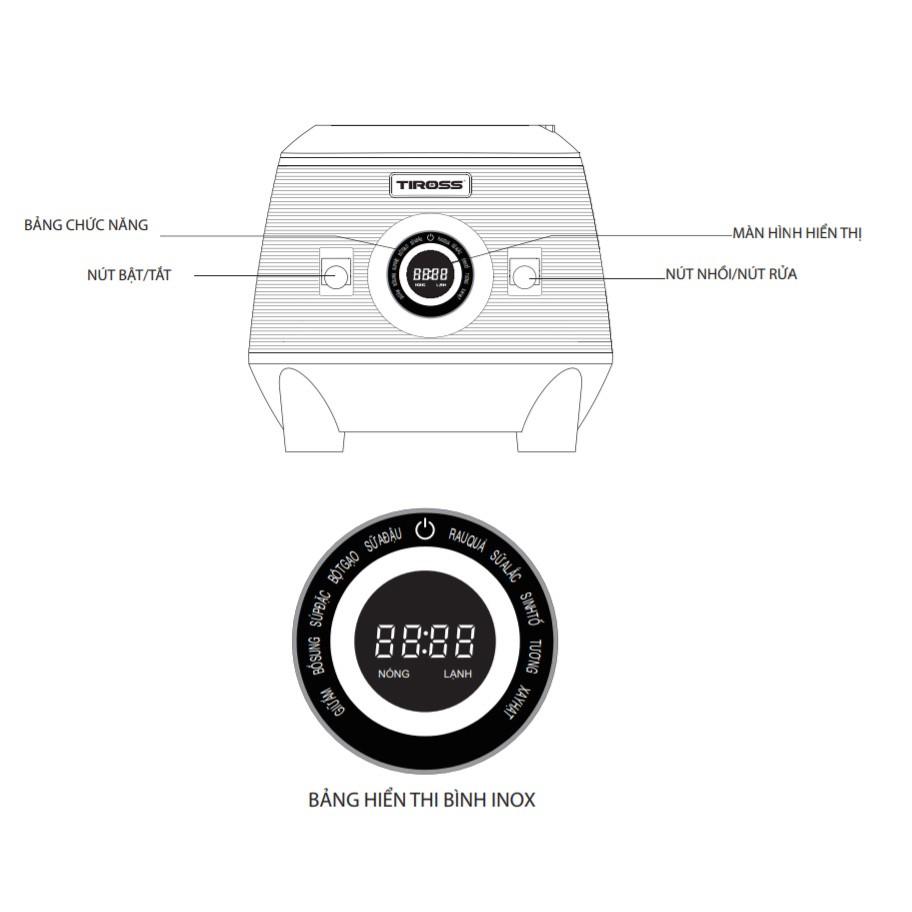 - Vận hành êm ái với độ ồn <85dB Thông số kỹ thuật Máy làm sữa hạt Tiross TS9821 – 1.8 lít