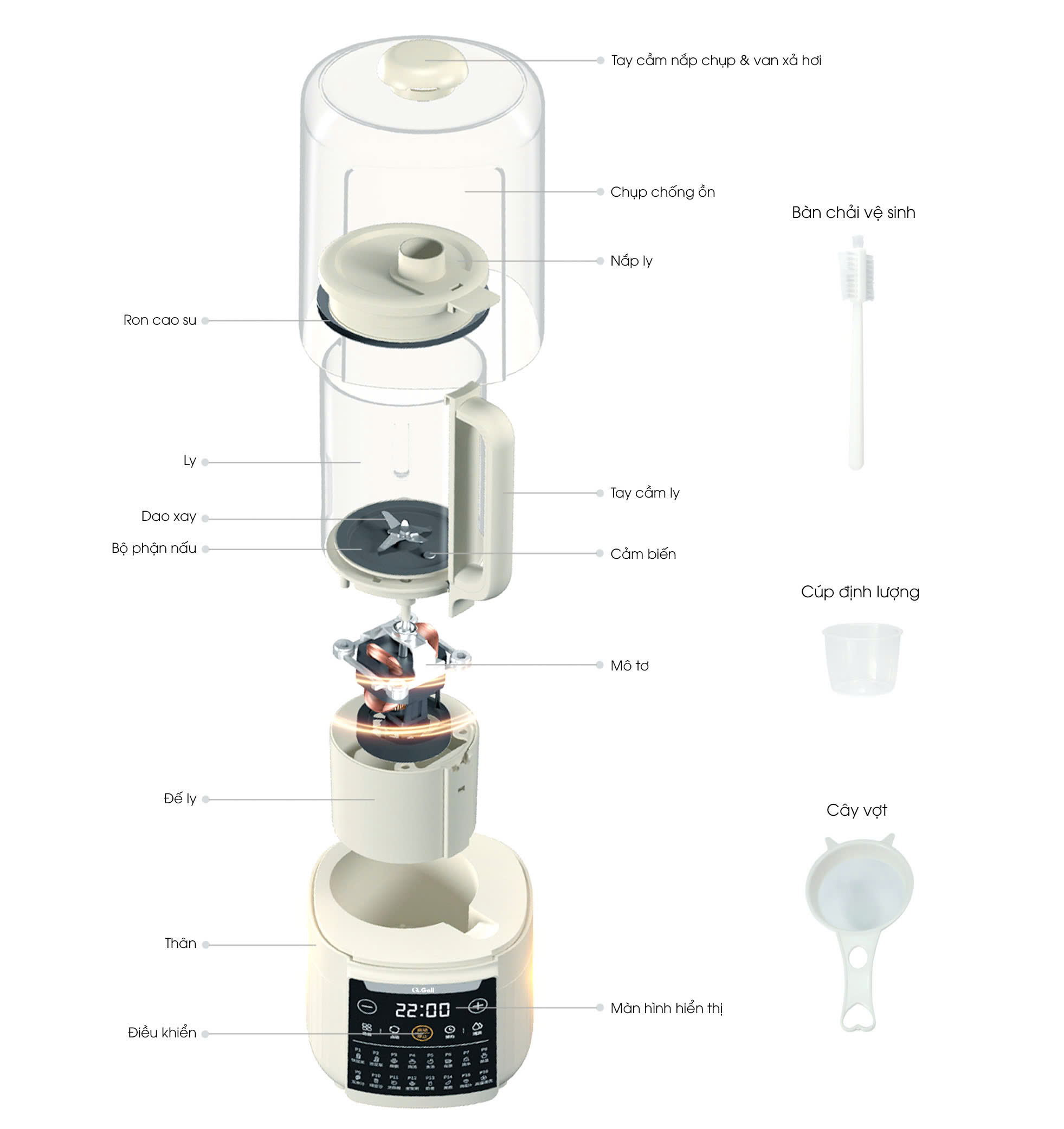 Đa chức năng (16 tính năng trong 1 sản phẩm): nấu các loại sữa hạt, cháo, súp, hấp thực phẩm theo nhu cầu, nấu ngắt hoàn toàn tự động. Xay các loại rau củ quả và sinh tố.