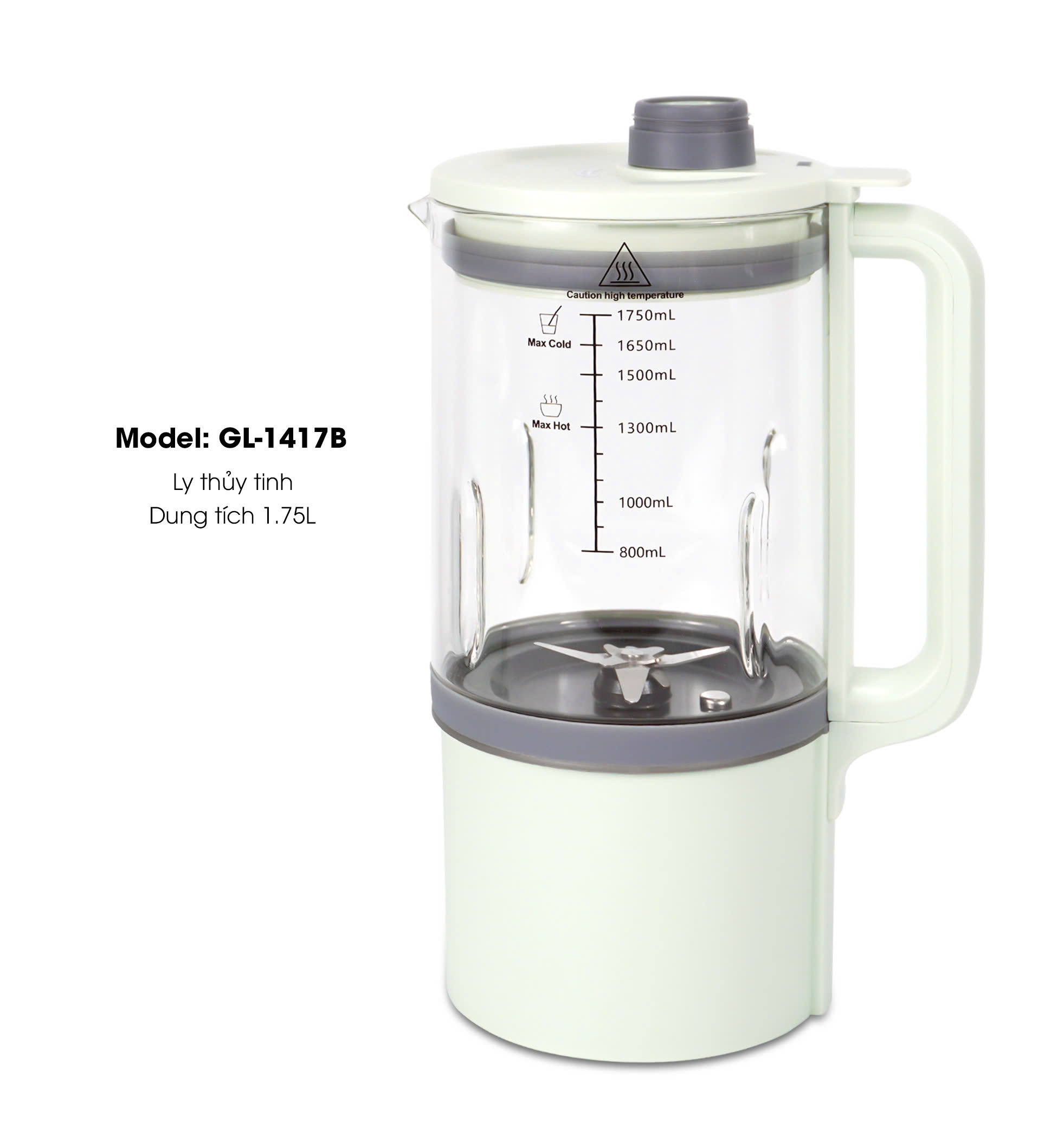 Đặc điểm nổi bật máy chế biến sữa hạt Gali GL-1417A 1.75 lít Nguồn điện : 220V/50Hz. Công suất xay 600W.Công suất nấu 800W. Dung tích : 1,75 lít. Cấu tạo cối thủy tinh,dao xay