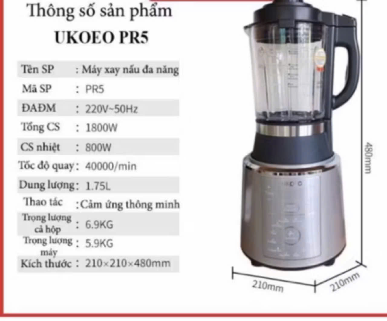 Ukoeo PR5 Plus - Models mới nhất năm 2023 Cái tiến nắp chống tràn inox, lồng hấp inox và cối chống dính THÔNG SỐ KỸ THUẬT