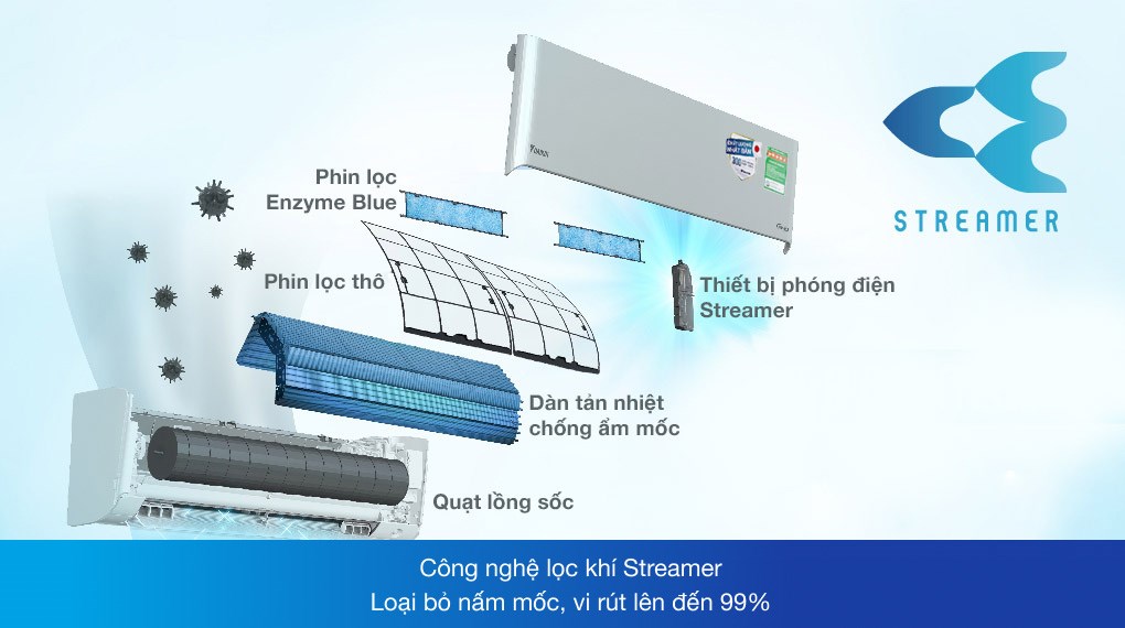 Loại bỏ nấm mốc, vi khuẩn đến 99.9% với công nghệ lọc khí Streamer