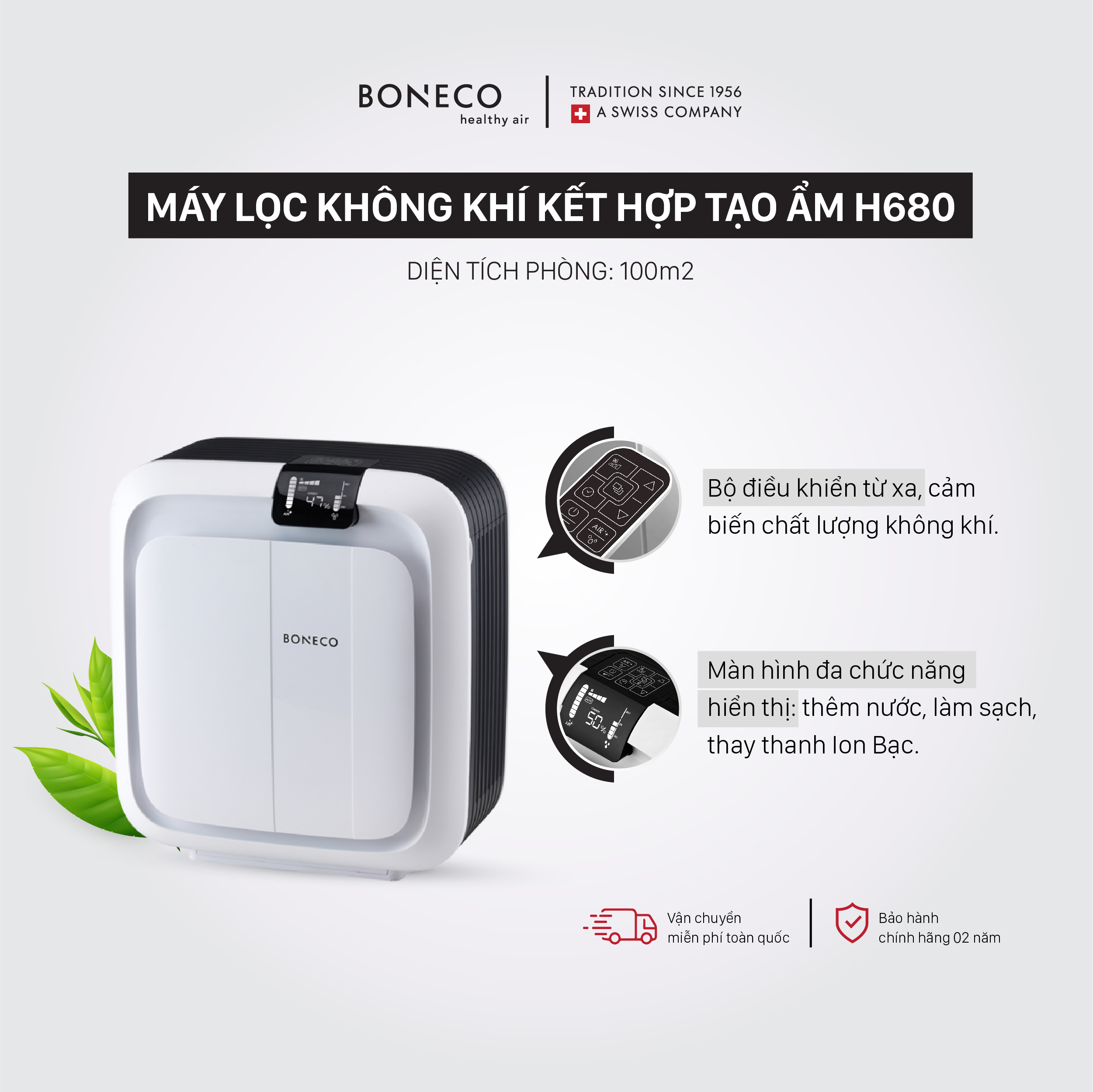 Máy lọc không khí kết hợp tạo ẩm BONECO H680 có điều khiển từ xa thuận tiện trong việc sử dụng thiết bị
