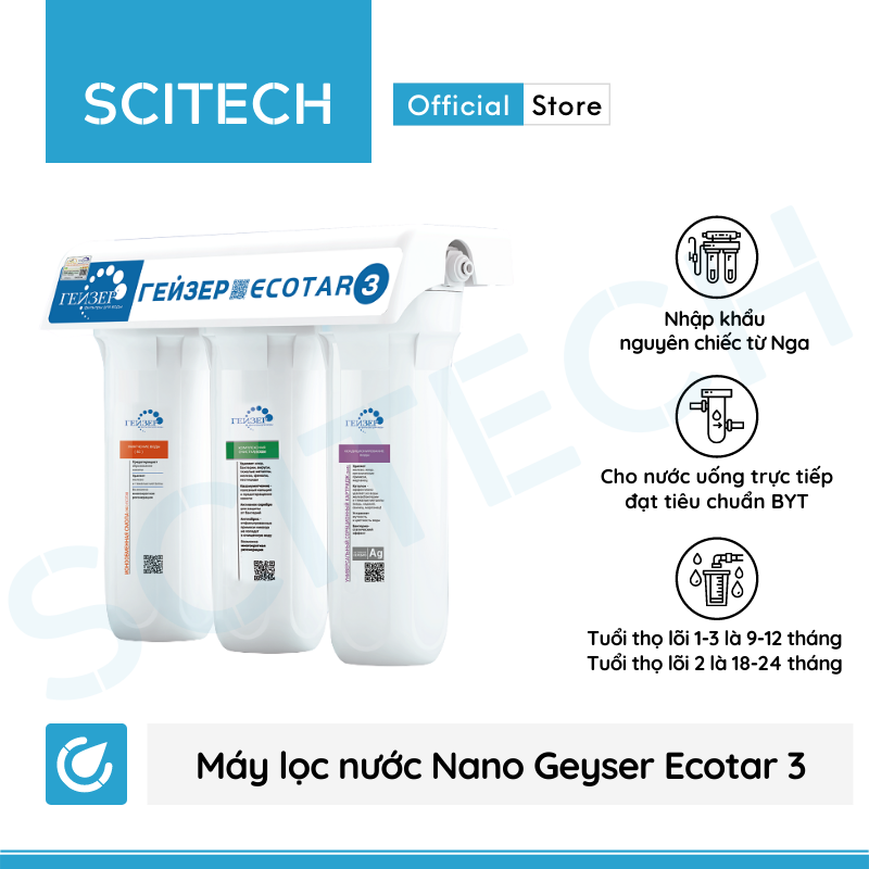 ✨Máy lọc nước Nano Geyser Ecotar 3 kèm bộ đơn lọc thô 10 inch by Scitech - Hàng chính hãng