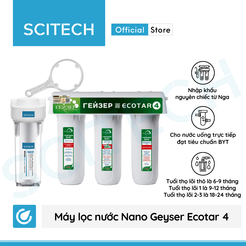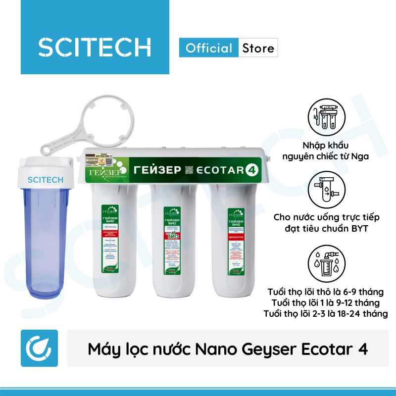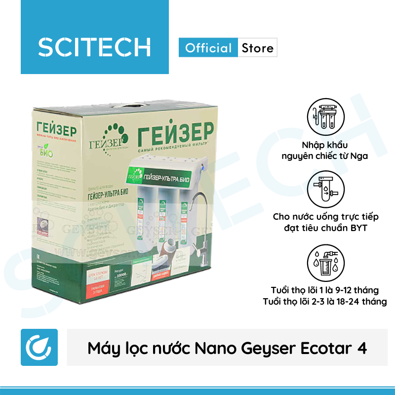 ✨Máy lọc nước Nano Geyser Ecotar 4 kèm bộ đơn lọc thô 10 inch by Scitech - Hàng chính hãng