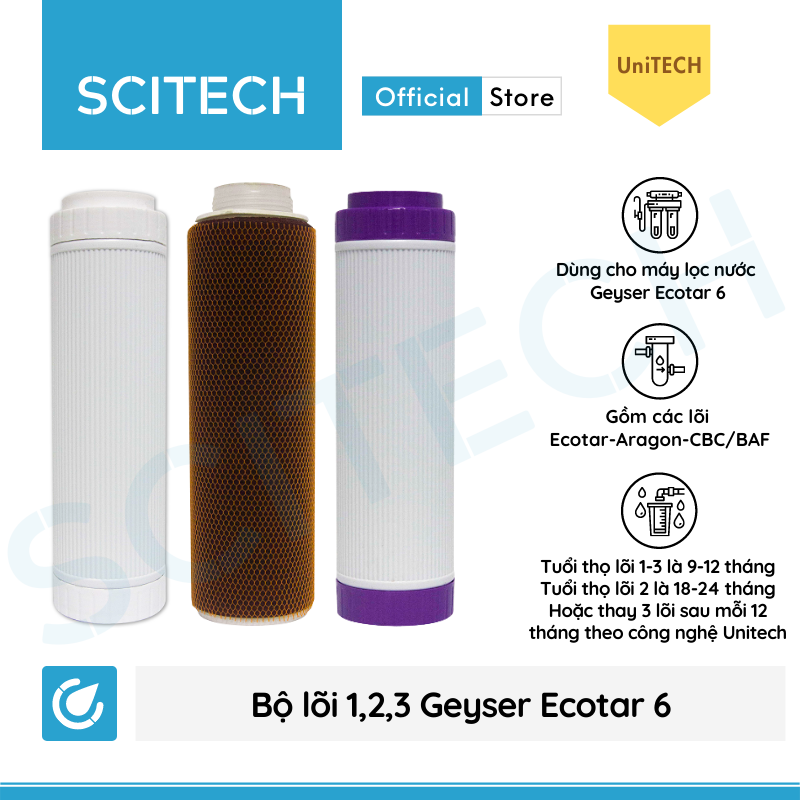 Thương hiệu: Nano Geyser Thời gian thay thế : LÕI 1 VÀ LÕI 2 LÀ 6 THÁNG, LÕI 3 LÀ 24 THÁNG Công nghệ: Nano Geyser Lõi PP.2IN1.GAC : Bông xốp PP có chức năng: Ngăn chặn bụi
