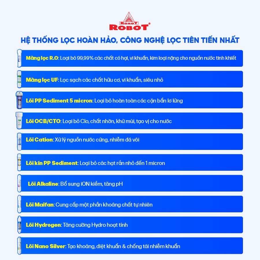 • Cùng các lõi lọc chức năng bù khoáng đặc biệt, cung cấp khoáng chất cần thiết, bổ dưỡng vừa đảm bảo an toàn & vừa tốt cho sức khỏe.