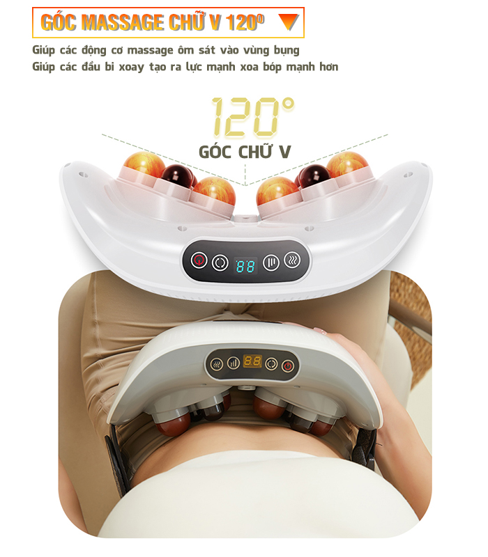 Góc massage chữ V 120o, nâng cao hiệu quả tác động